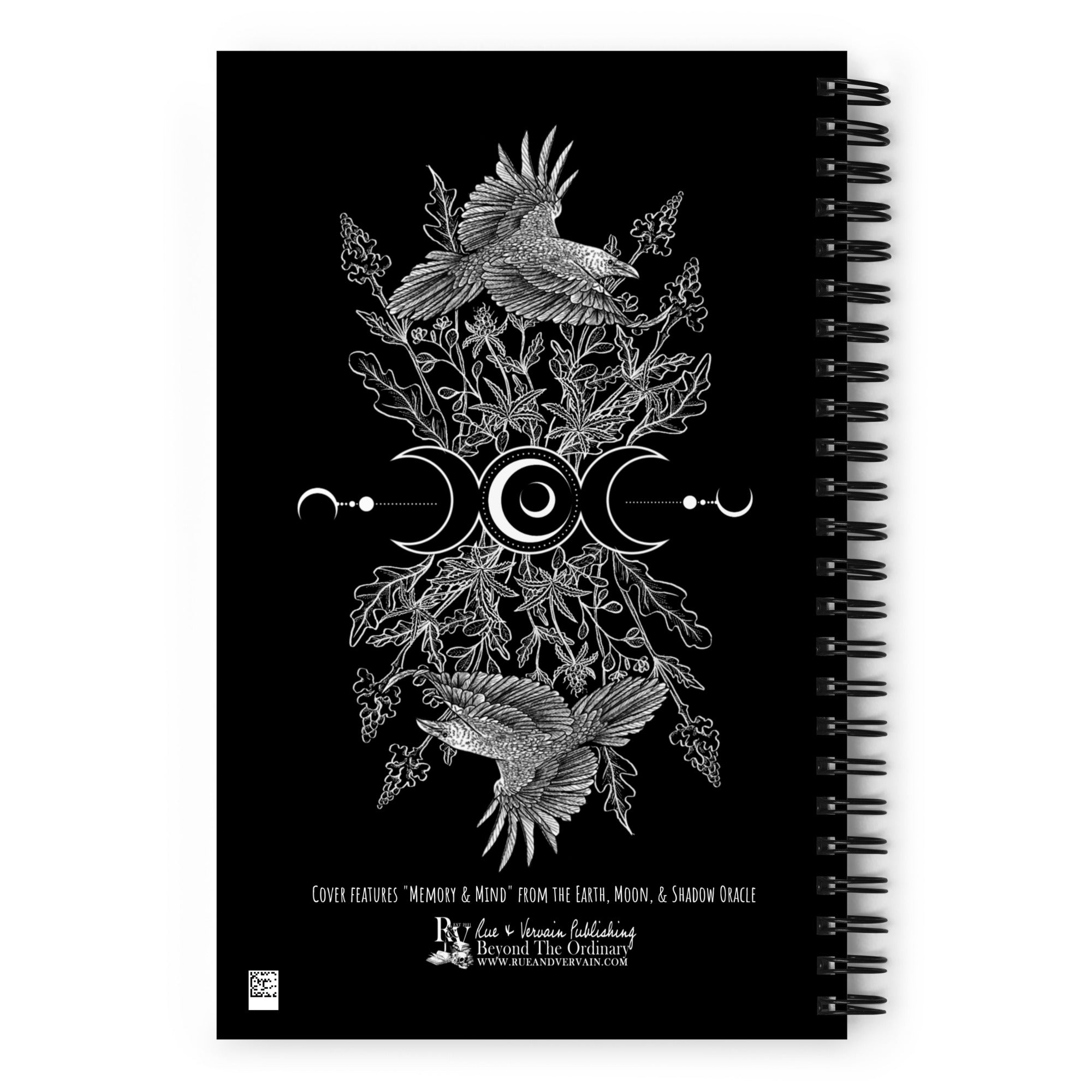 From the Earth, Moon, & Shadow Collection, featuring the Memory & Mind artwork. This custom wire-bound notebook will be a great companion to your oracle deck or any shadow workings!
